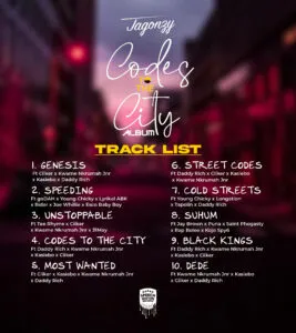 ‘Codes Of The City’ is Jagonzy’s second studio album, and it’s shaping up to be a game-changer. With its unique blend of hip-hop, trap, and African rhythms, this album is a must-listen for music lovers.